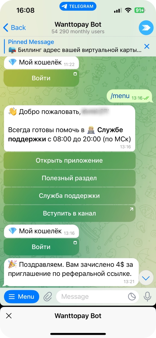 The invited friend has previously launched the Wanttopay chatbot — no bonus will be credited.